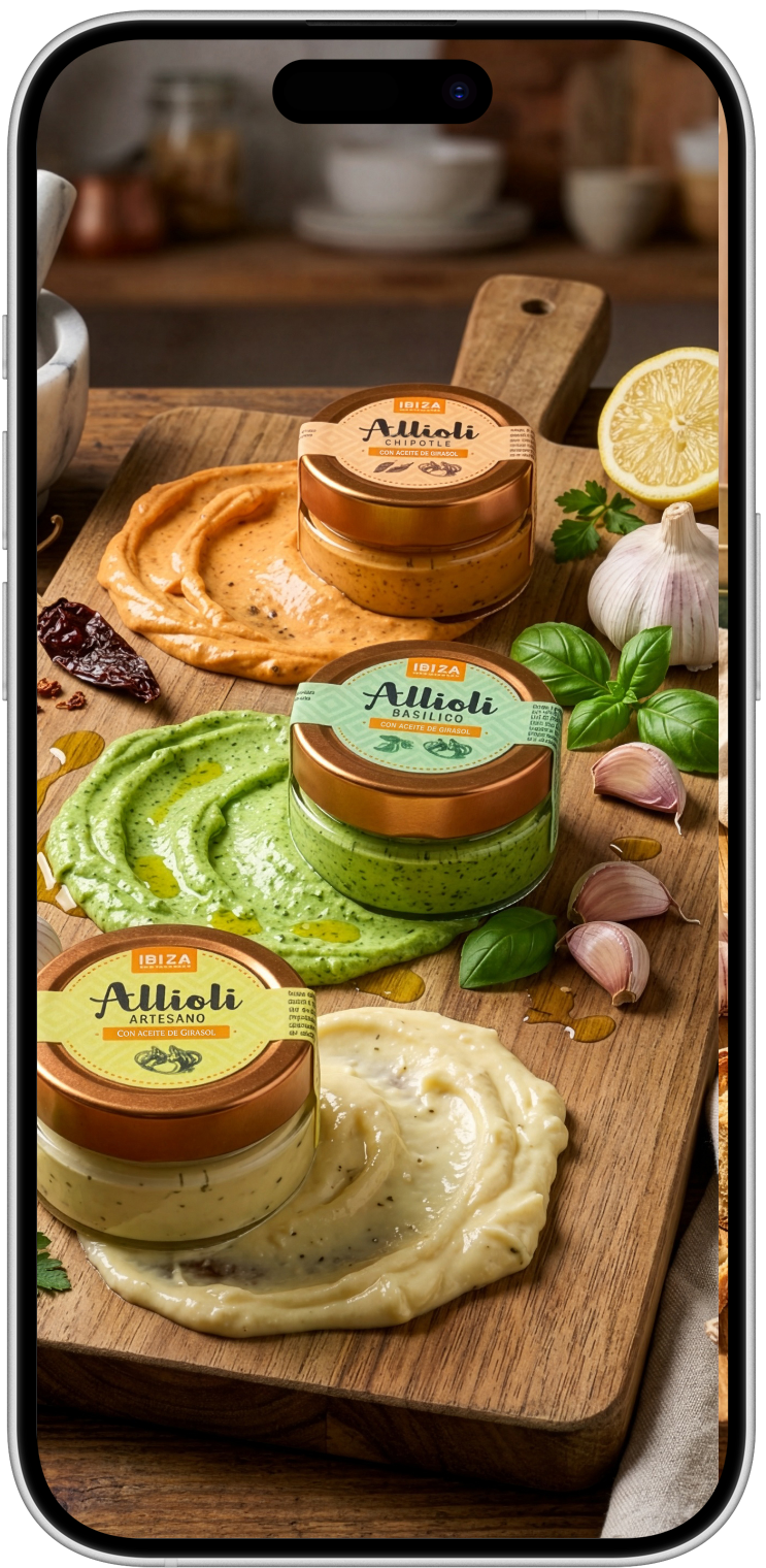 En Ibiza se valora lo auténtico, pero también lo bello. Por eso, cuando Fluxà nos pidió rediseñar su alioli artesanal, supimos que no bastaba con modernizar la imagen: había que construir un lenguaje visual a la altura del producto.